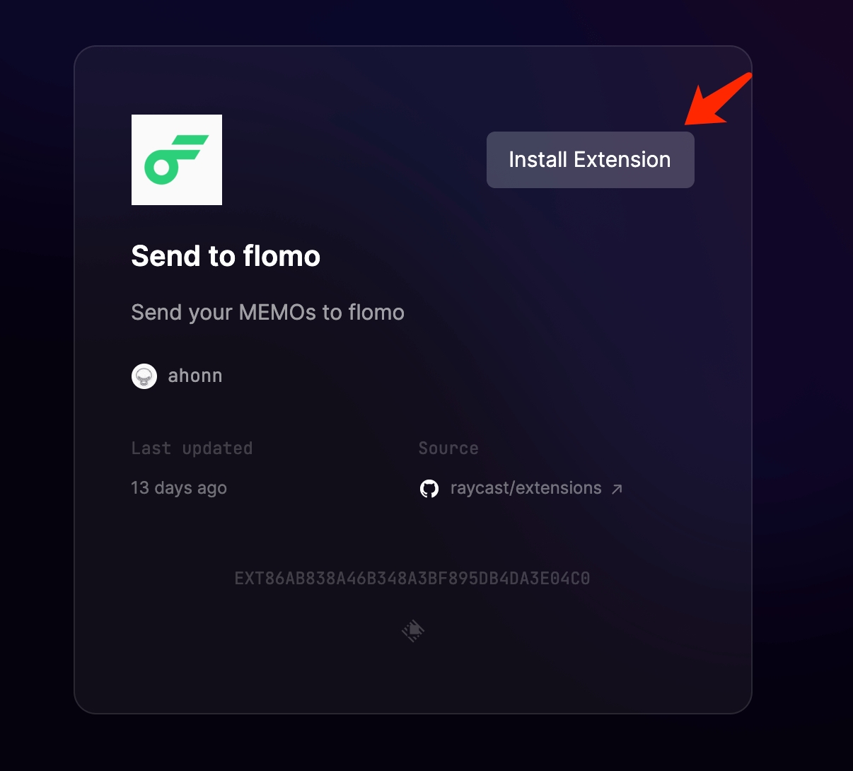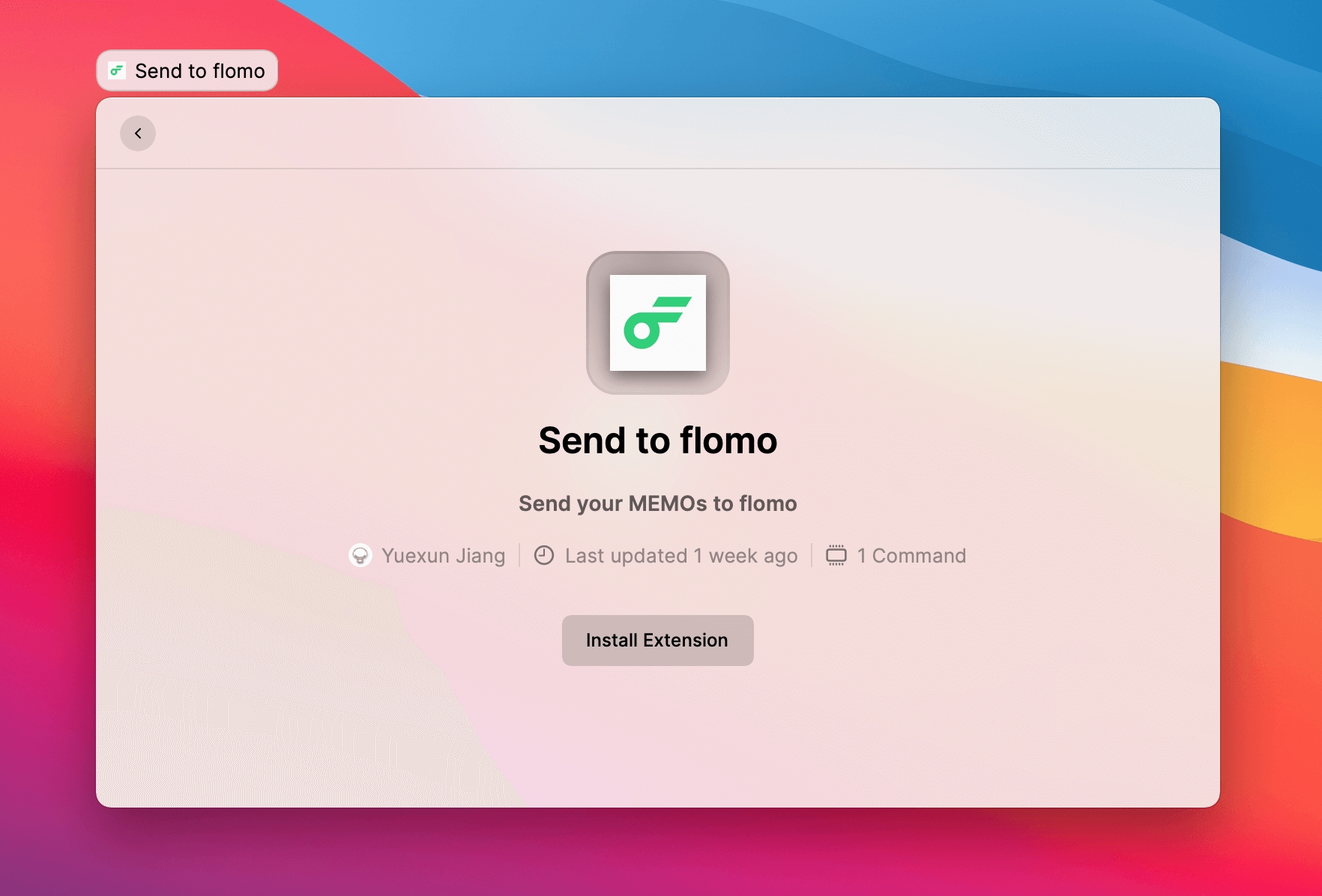 Step 2. After installing the Raycast, click to install flomo extension: https://www.raycast.com/ahonn/send-to-flomo(opens new window)