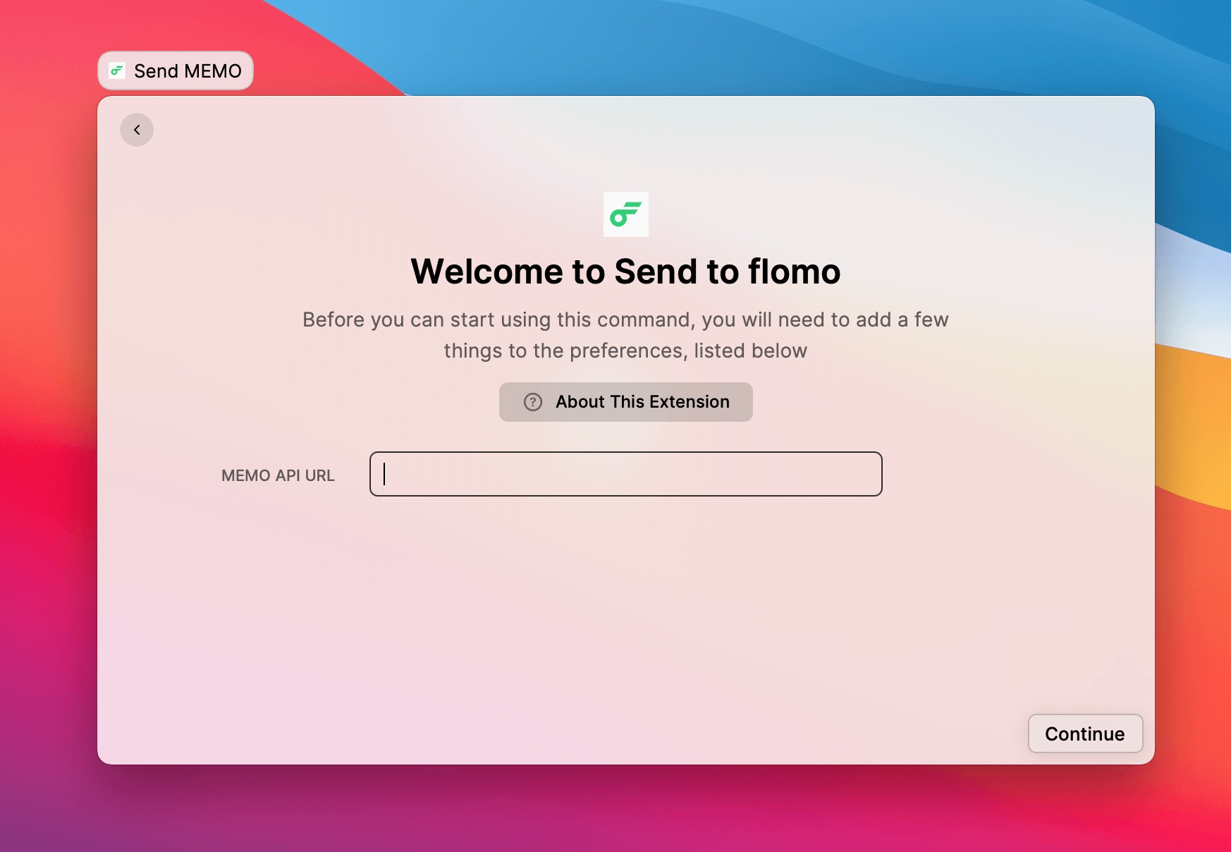 After installing the flomo extension, click the Open Send MEMO, and then input your flomo API (If you don’t know your API, check here)