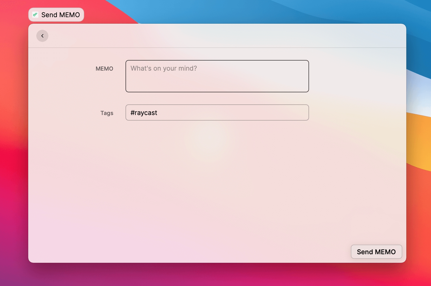 Open Raycast and choose Send to flomo. Now you can input any ideas and tags to flomo.