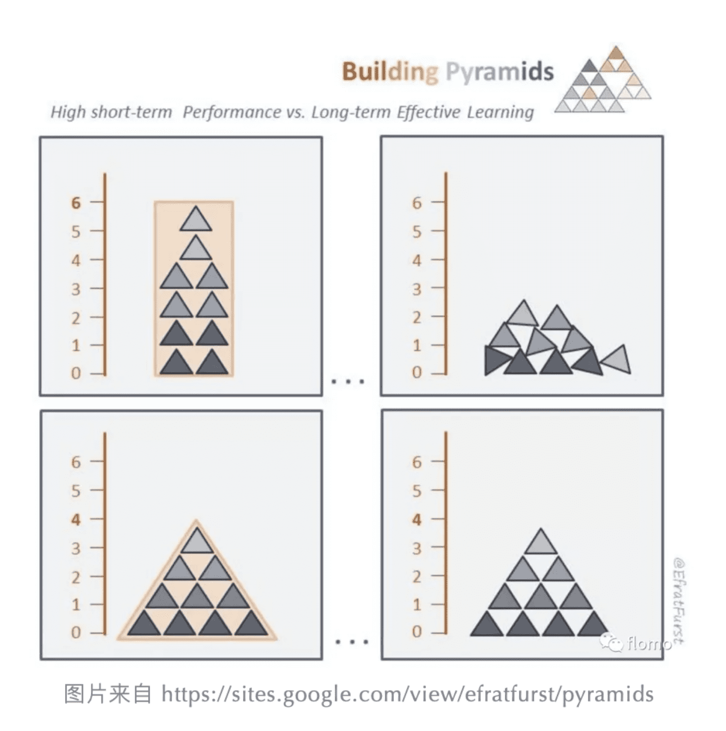 According to the picture above, when we want to reach a certain goal, there are several different methods. The two methods on the top are effective without firm foundations. But the method on the bottom of this picture is steady and showing connections among knowledge chunks.